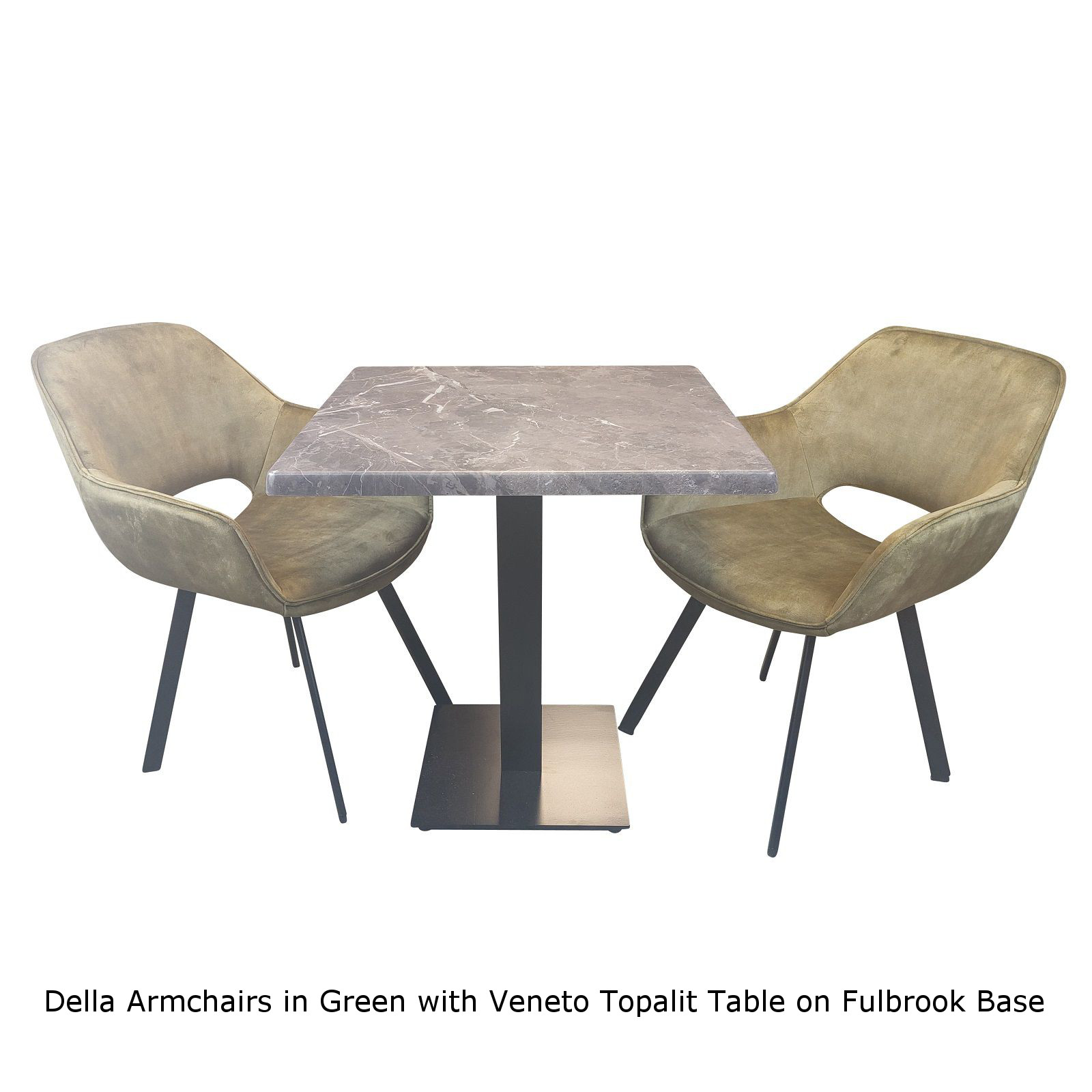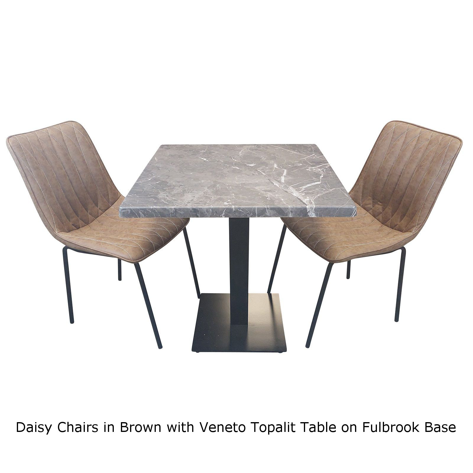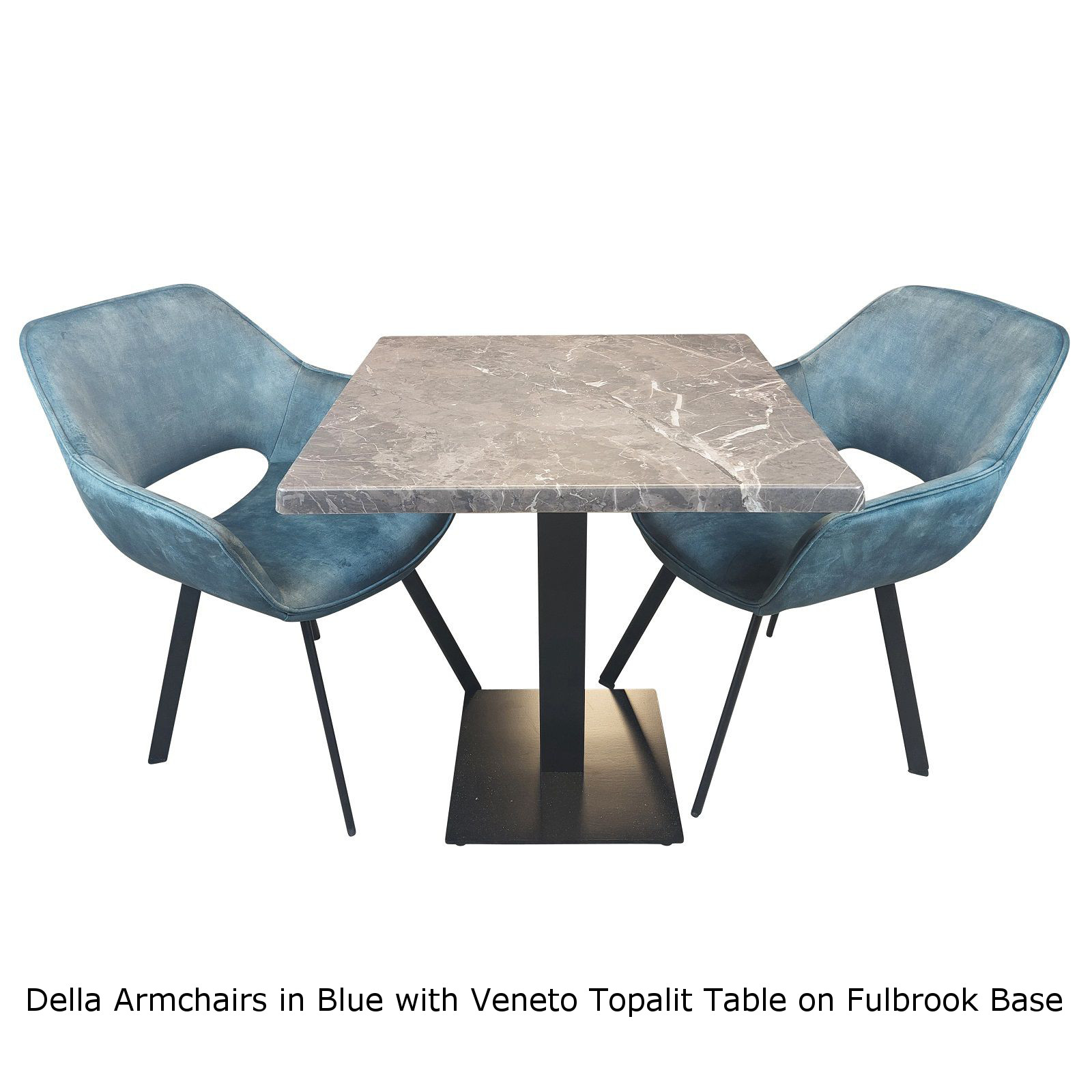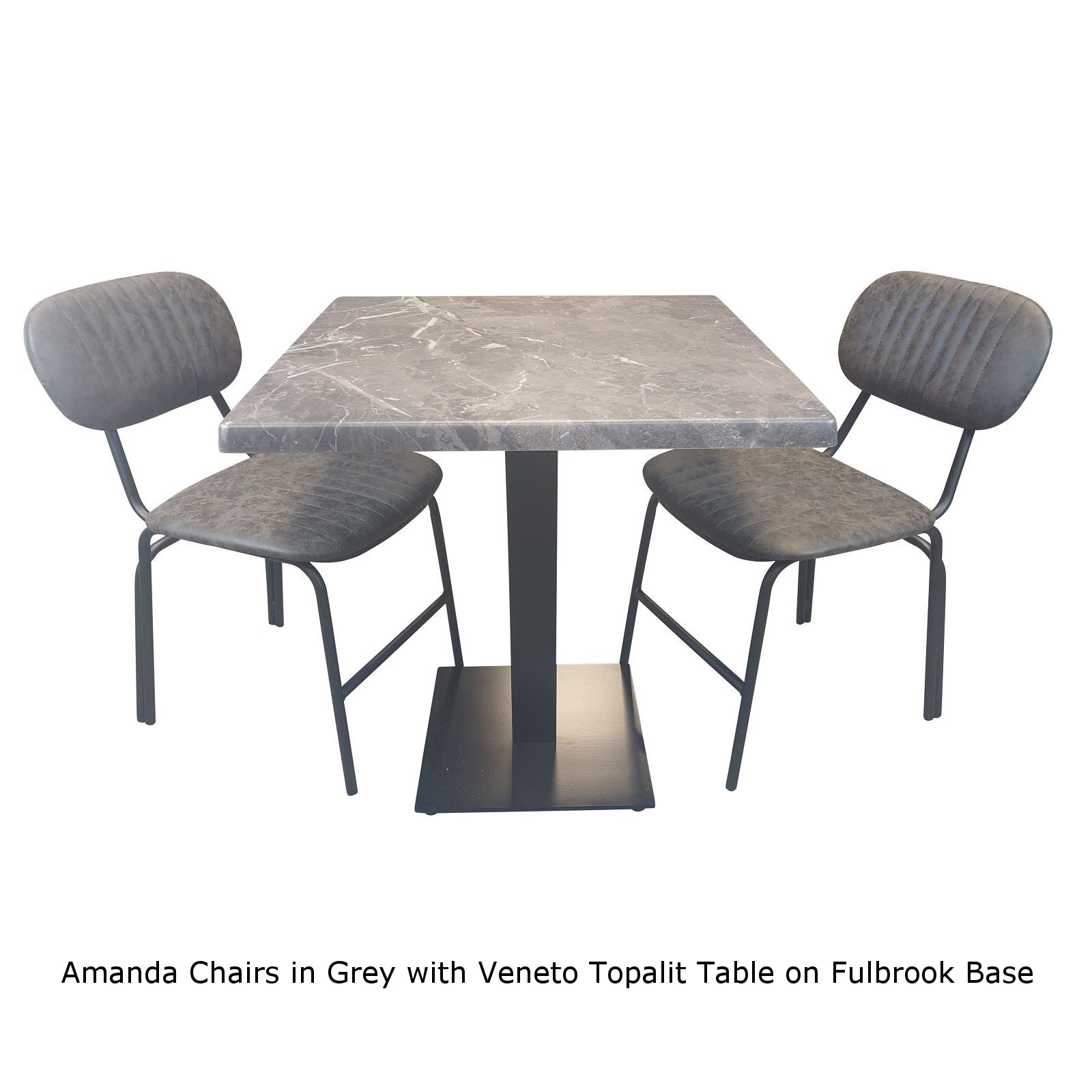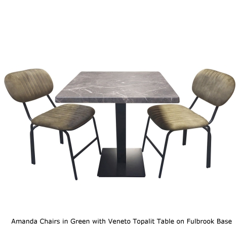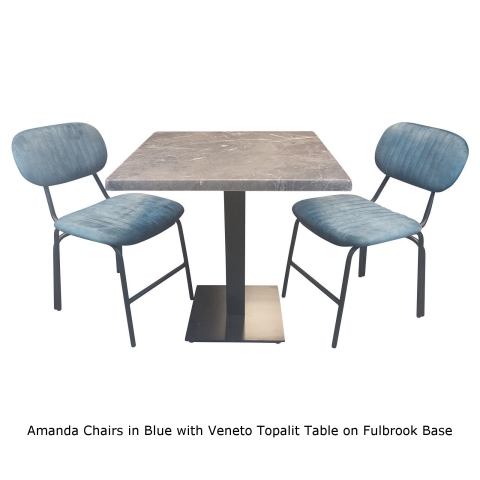 A 70cm Square Veneto Topalit Tabletop supported on a black cast iron square Fulbrook Table Base.